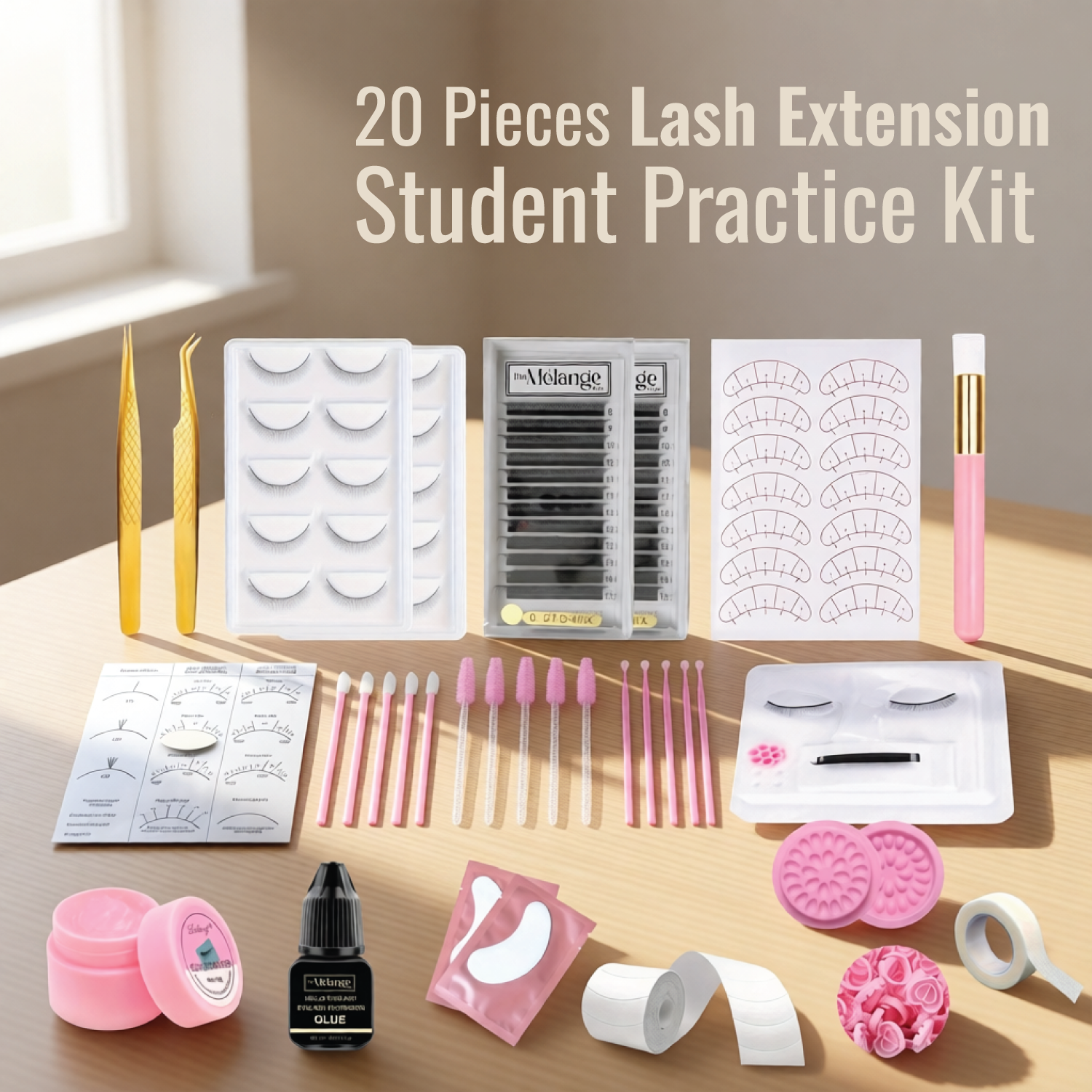 Achieving beautiful eyelash extensions at home is now simple and hassle-free. The 20 PCS Personal Lash Kit is thoughtfully created for beginners and beauty lovers who want an easy, affordable, and effective way to apply and maintain lashes. This complete starter set includes 20 essential tools, giving you everything you need to enhance, touch up, and care for your lashes from the comfort of your home.