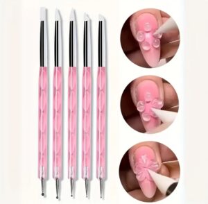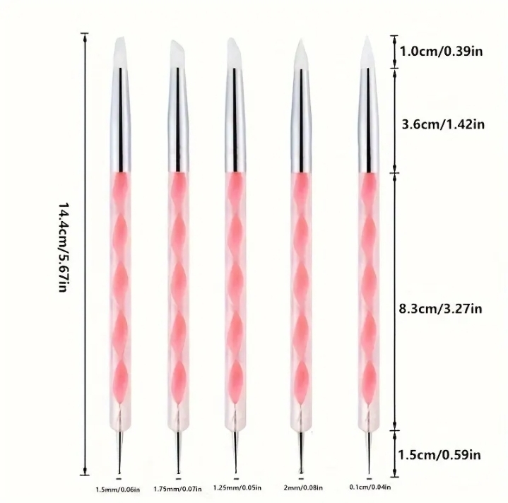 5 x Dual-Ended Nail Art Pens (Dotting Tool + Silicone Scupltor)