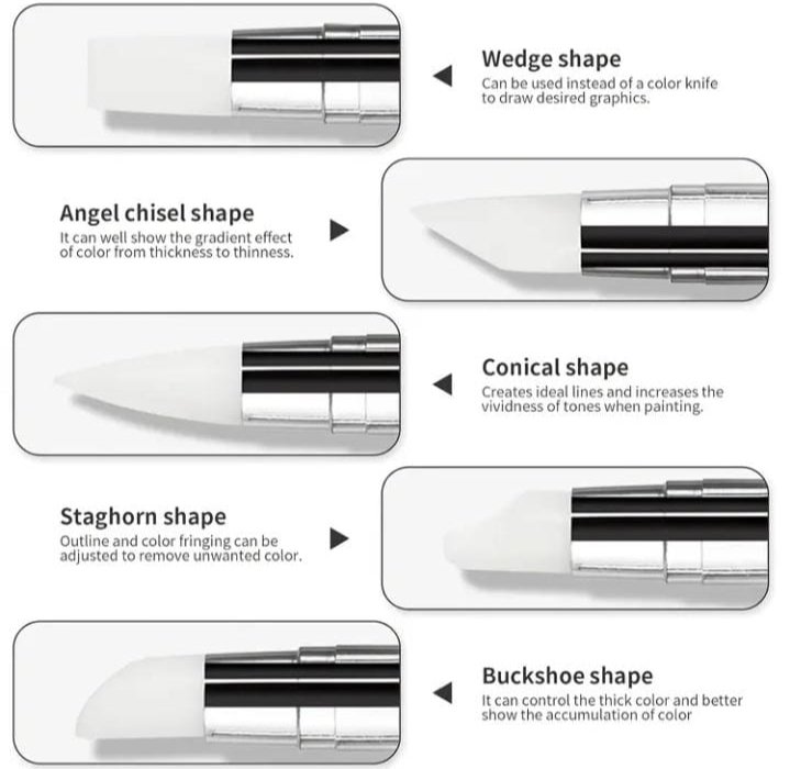 Five Unique Silicone Pen Tips: Soft and flexible, designed to meet various customer needs for sculpting and painting. Unleash your advanced nail artistry with this essential 5 Pcs Dual-Ended Silicone Nail Art Tool Set.