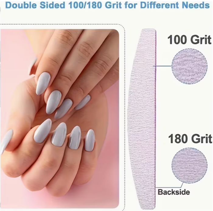 Curved Ergonomic Shape – Follows the natural nail curve for accurate filing