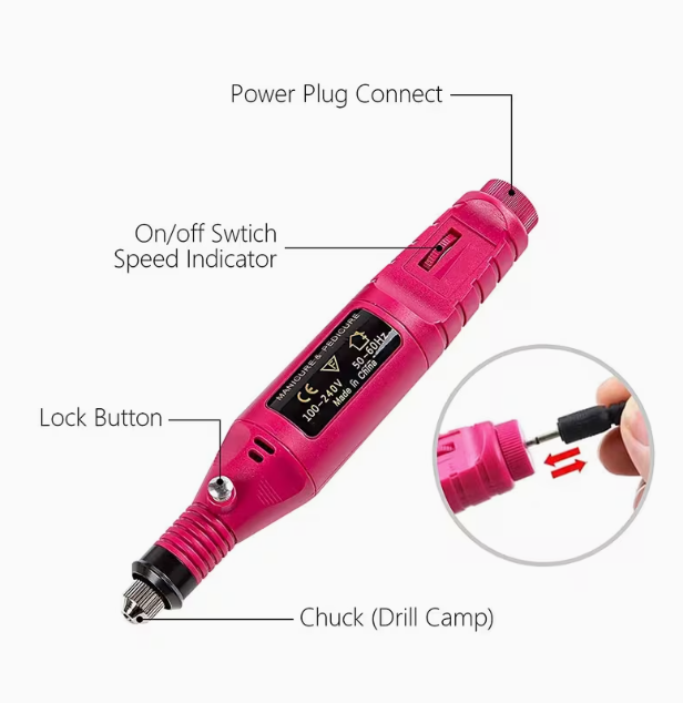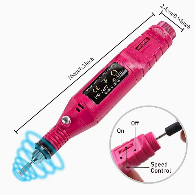 - Digital Display: A small screen on the handle likely shows the current speed setting or battery level (if rechargeable), allowing for precise control over your manicure process.