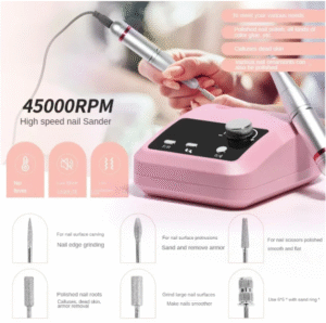 45000 RPM Electric Nail Drill Machine – Professional High-Speed Nail Sander for Manicure & Pedicure | Low Heat | Low Noise | Full Nail Drill Bits Set