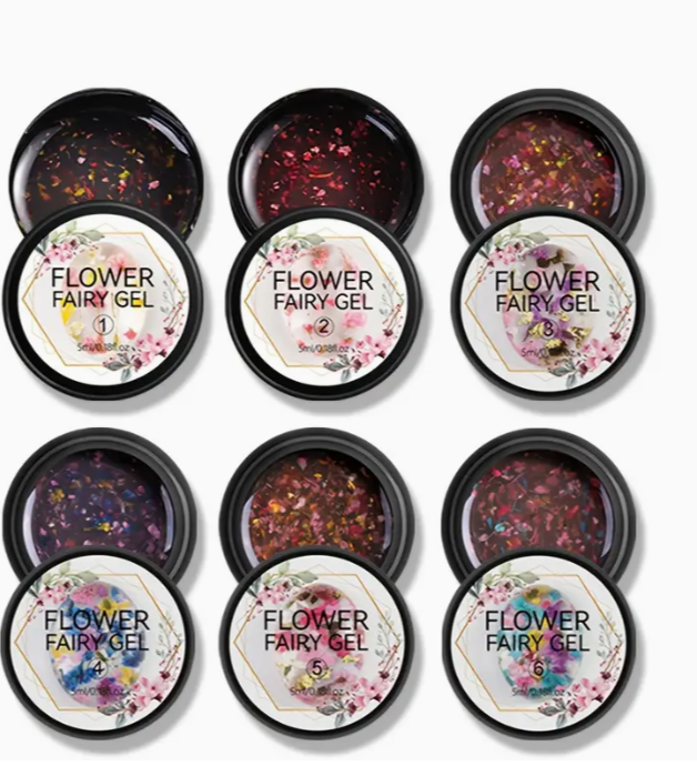 Bring your nail designs to life with our Flower Fairy Gel, a stunning blend of dried flowers and sparkling glitter. This gel offers a transparent jelly base packed with colorful floral pieces—perfect for creating elegant, dreamy, and salon-quality nails at home.Whether you’re doing manicures, extensions, encapsulated designs, resin art, or press-on nails, this gel adds a magical, fairy-like finish to every look. The texture is smooth, easy to apply, and cures quickly under UV/LED lamps.