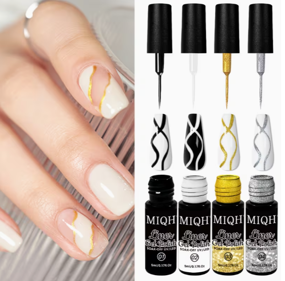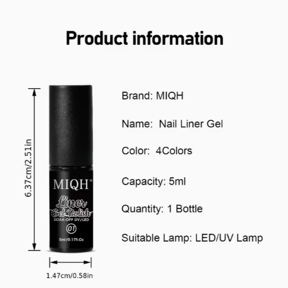 This Gel Nail Liner is designed for both professional nail technicians and home users. Each shade is carefully selected to offer a variety of creative options, from bold solid colors to elegant nail art designs. The gel formula cures quickly under UV or LED lamp, giving a chip-resistant, glossy finish that lasts up to 2–3 weeks. The smooth brush ensures streak-free application and even color coverage with every coat.