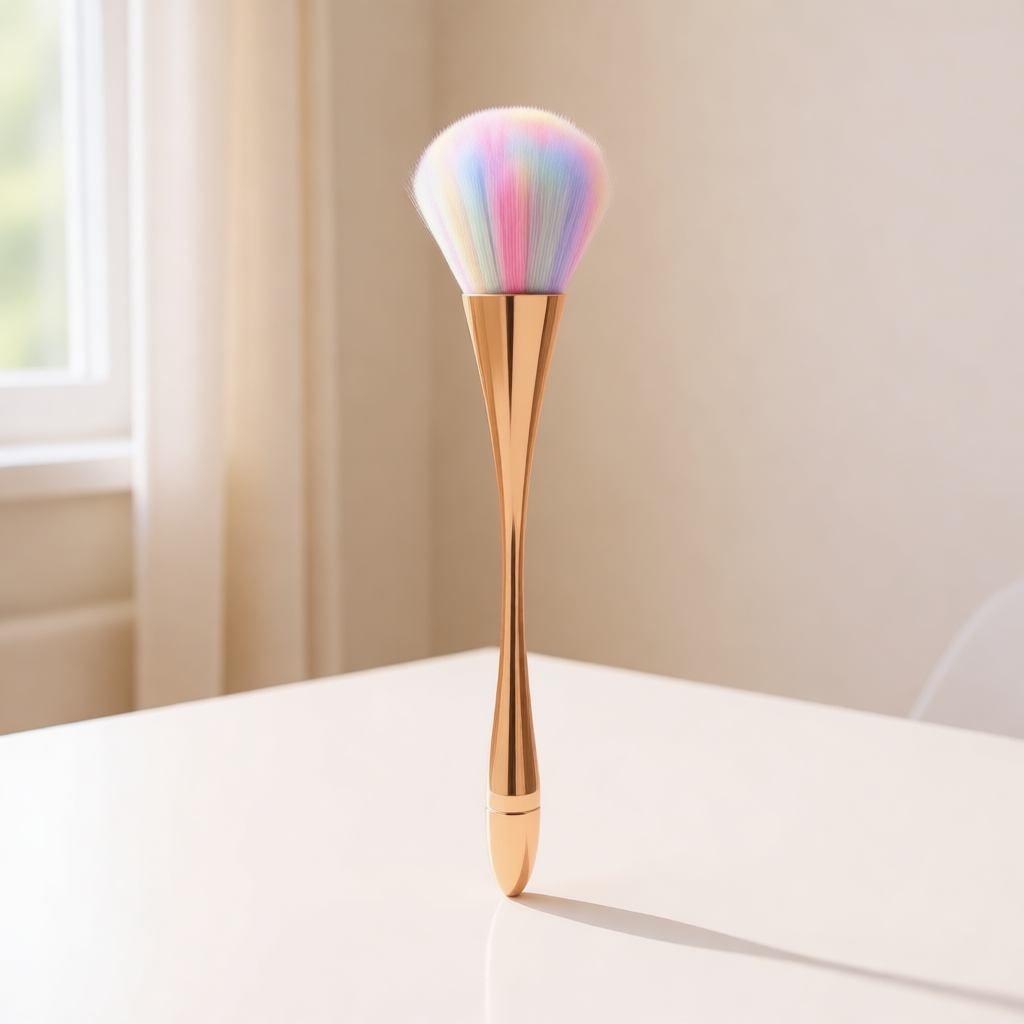 This nail dust brush features ultra-soft, dense bristles that effectively sweep away fine nail dust without irritating the skin. The lightweight, ergonomic handle provides a comfortable grip, allowing precise and effortless cleaning around nails and cuticles. Its elegant design makes it suitable for both salon use and personal nail care kits.