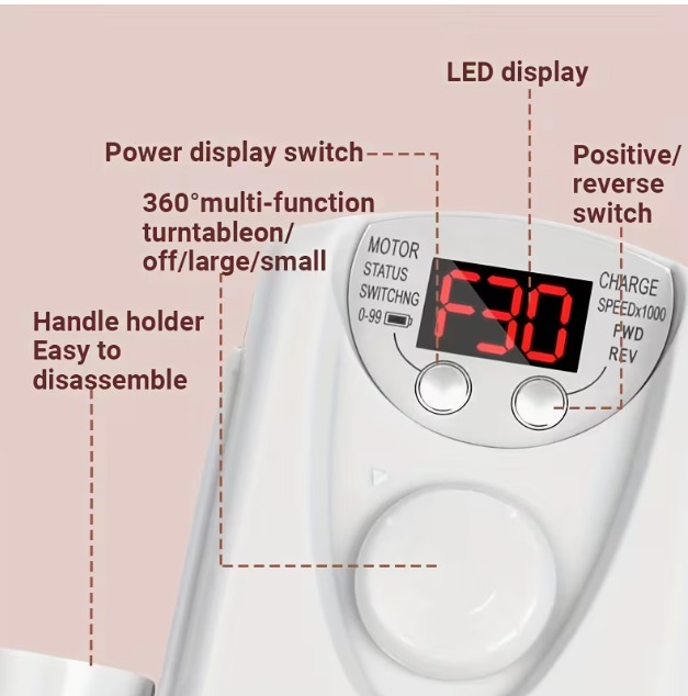 - Portable Design: As indicated by the name “Mobile Drill,” this device is built for portability, making it ideal for mobile nail technicians or for convenient use at home.