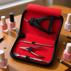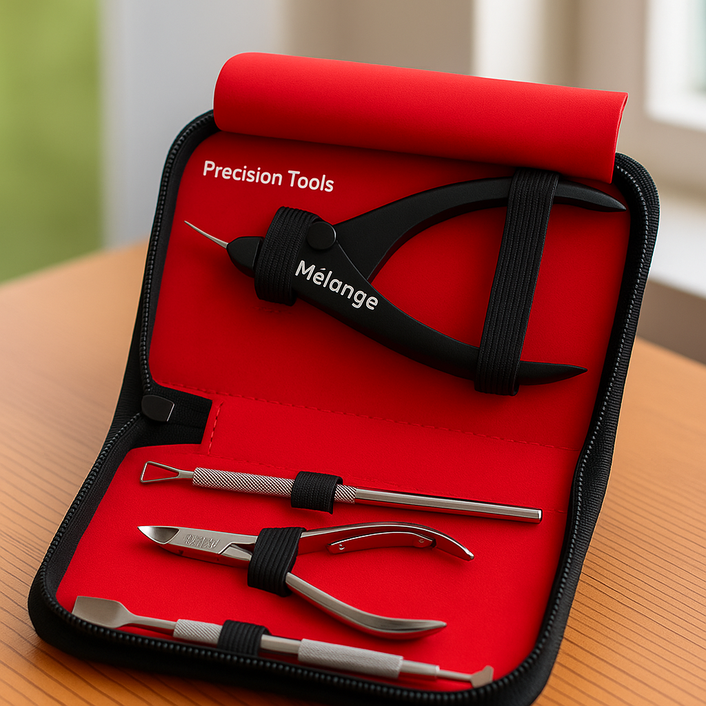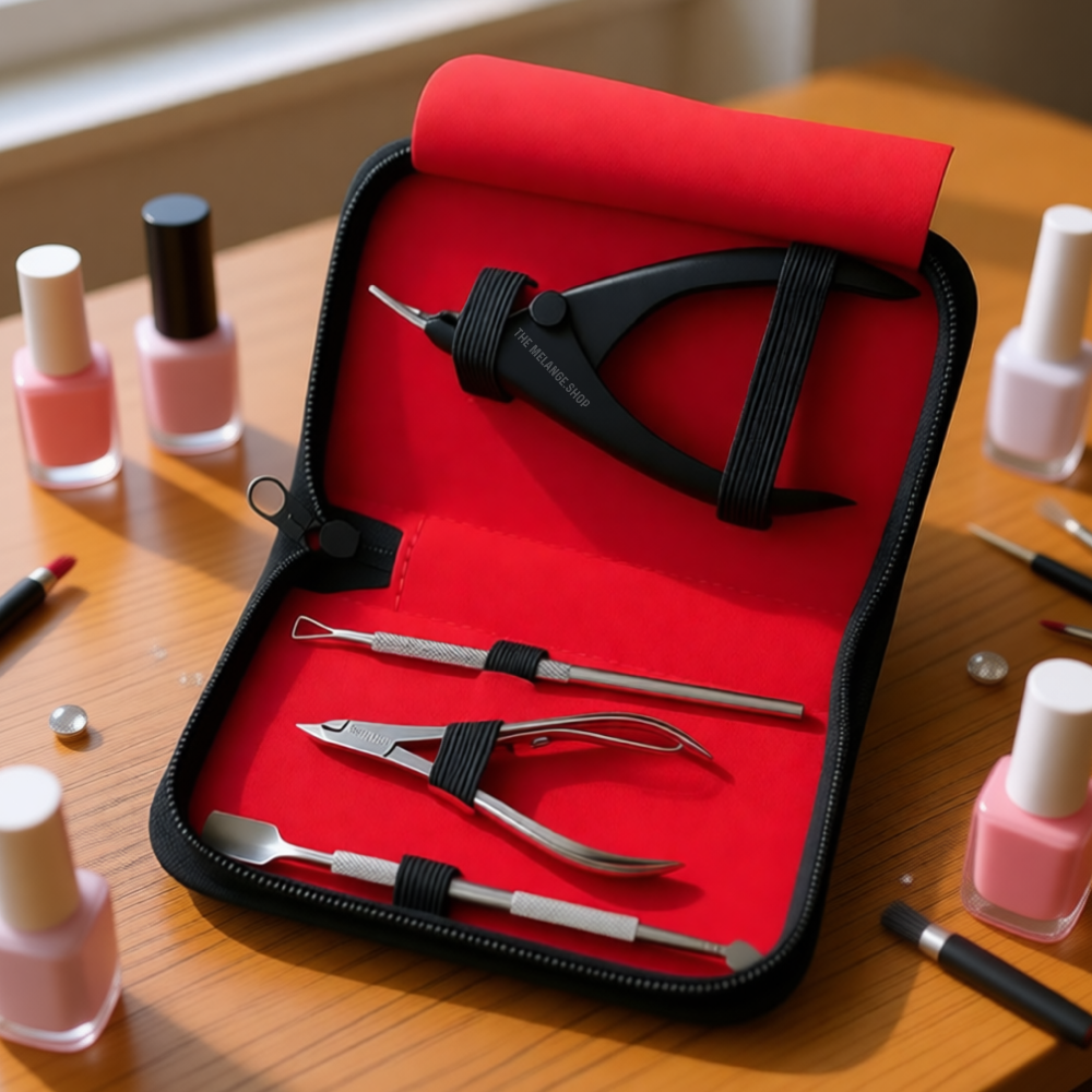 This premium nail tool kit includes high-quality stainless steel instruments crafted for accuracy, durability, and comfort. Each tool is securely placed in a soft inner lining to prevent damage and ensure easy organization. The ergonomic design allows smooth handling, while the sharp, precision tips help achieve clean and professional results every time.