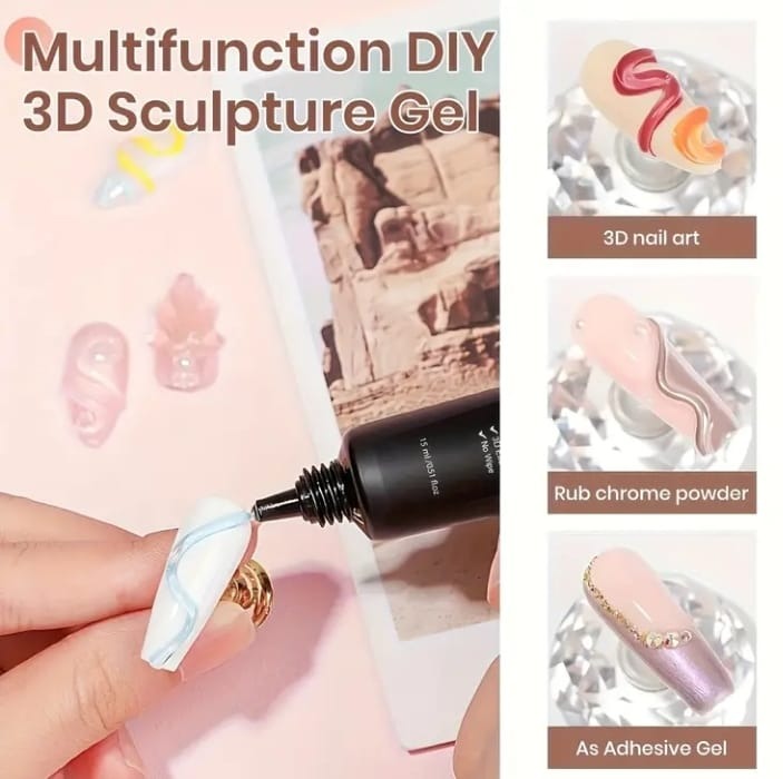 3D Nail Gel Art for Nail Decorations, Chrome Powder And Rhinestones, 4-In-1 No-Wipe Gel, DIY Home Painting for Nail Art, Requires Curing.Long lasting and Easy to Use for Beginners