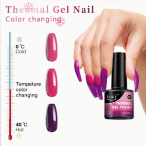 Thermal Nail Gel Polish— a collection of mesmerizing, soak-off gels that shift color based on temperature, paired with sparkling glitter for extra glam. From icy blues to warm pinks, radiant reds to cool teals, each shade reveals a hidden gradient as you move from warm to cool environments — creating a dynamic, eye-catching effect that’s pure magic on your nails.